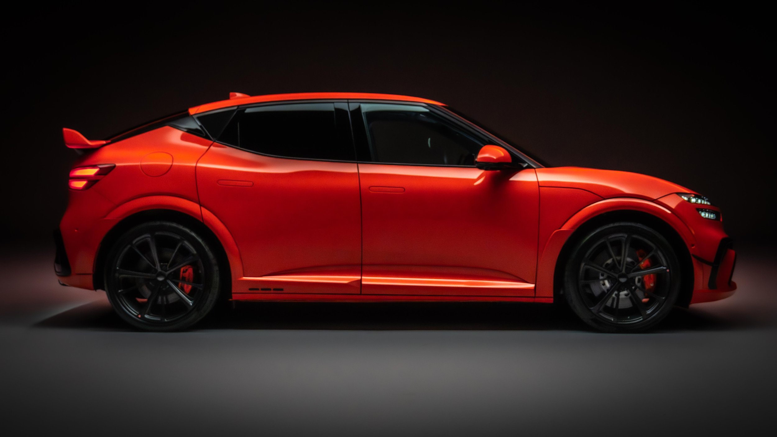 Offered in a subtle shade of liquid hot magma, the performance GV60 gets the latest 84 kWh battery and two powerful motors turning out a huge 650 HP.